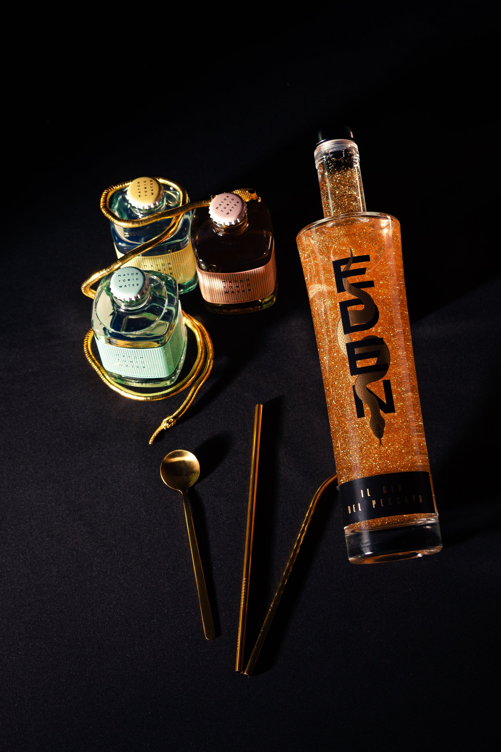 Porta a casa l’essenza di un aperitivo raffinato. Nella box trovi una bottiglia di Eden Gin, con la sua polvere dorata che incanta ad ogni versata, e 3 Match Tonic selezionati per esaltare al meglio le note fresche e aromatiche del gin.